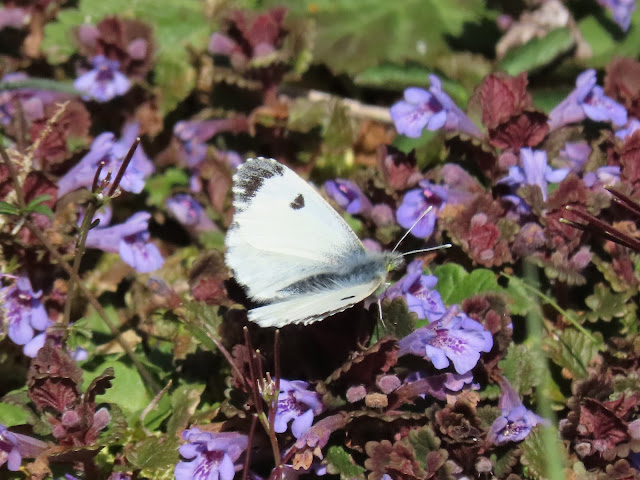 Feeling at least partly rewarded, I returned to the car and ate my picnic lunch, enjoying the view. It had now begun to warm up a bit more and I noticed orange tip and brimstone butterflies in the grassy area next to the car park so decided to go back and explore a small part of the hillside where I would expect to find a range of species on a less windy day. I found a couple of female brimstones and then another green hairstreak but sadly nothing else. Definitely a place to return to in a few weeks time I think.